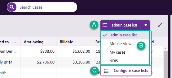 The Case List Criteria enable you to quickly change the Case List display. Criteria settings are collected and saved as views.