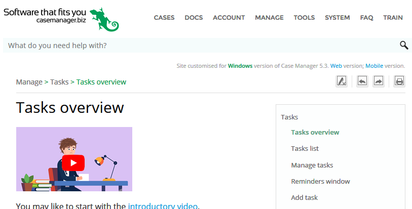 The lessons aim to teach you the most important aspects of a topic, rather than overwhelm you with details. Structured lab exercises offer the opportunity to apply your learning in Case Manager. And each module has a quick quiz to help you consolidate your learning.