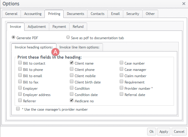 Note that you can also customise the heading/line item settings and/or the invoice layout for particular customers or for particular categories of work.