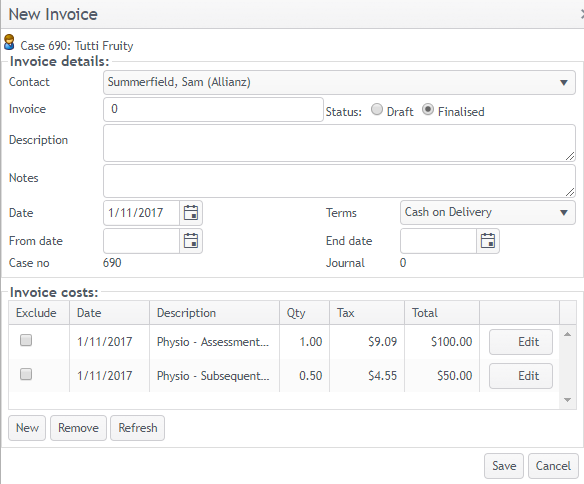 When an invoice is created, all the unbilled costs for the case are collated and the invoice is created. This will usually be sent to the case's Bill To contact, i.e the person representing the company that is paying the bill.