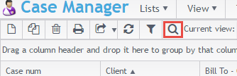 At the Case List (left hand side of the screen) click the filter icon. In the empty row under the column headings enter Adams underneath the Client column heading, see Quick filter.