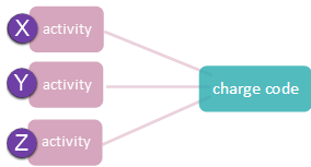 A number of relationships are possible between activities and charge codes. You set up activities in the Activity List and charge codes in the Charge Code List. You usually connect them in the Activity List and set up these relationships to reflect your needs, see Relationships between activities and charge codes.