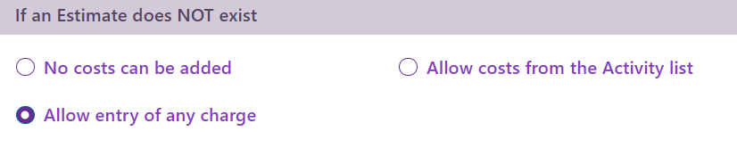- when users are permitted by another category setting to enter any new costs to a case (i.e. costs not already in the Activity List):