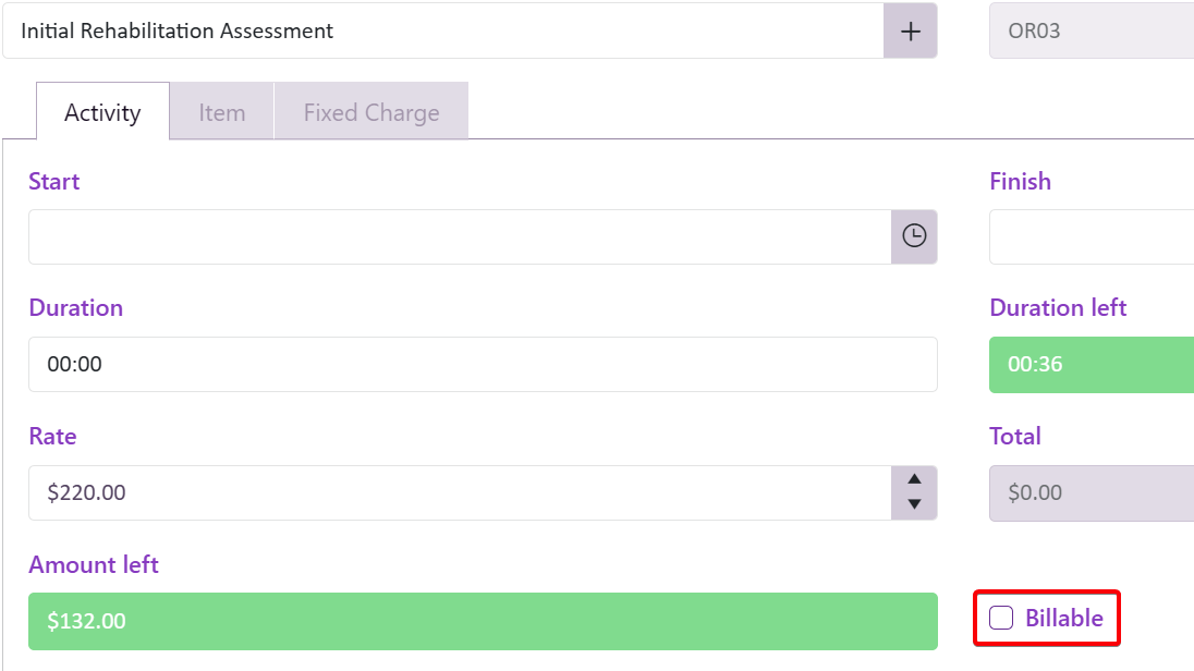 Note that you can only add the full fixed cost to a case; it's not possible to add a portion of a fixed cost, even though you do record the time spent.
