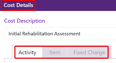 Note that when you see the word activity in Case Manager outside of a cost's Charge details area, it usually refers generally to all types of potential costs. For example, we say that the Activity List contains activities, which are potential costs of all three types.