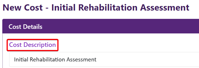 The charge options that are available to select from in the Description dropdown list were previously set up in the Activity List. Each member of the Activity List is linked to one or more categories. So the category of the case for which the new cost is being entered (along with any estimates applied to the case) determine which charge options are available to select.