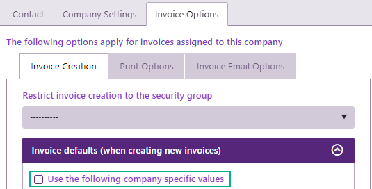 • If invoice email template settings are defined for the invoice contact's company, then they are applied to the invoice email.