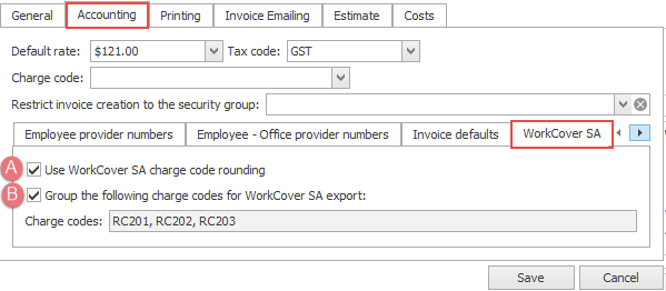Click the Accounting tab and then click the WorkCover SA tab (WorkCover SA is the old name for ReturnToWorkSA).