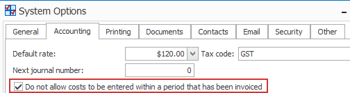 This is because the rounding up, in effect, tries to add a cost within an invoiced time period, which you have specified that you want to prevent. The solution is to turn off this setting temporarily while you create the invoices.