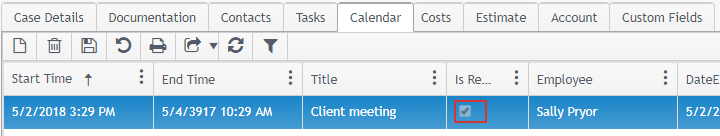 A recurrent appointment appears once in the list of appointments at the Calendar tab.