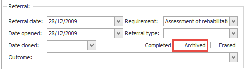 To archive a case select its Details tab and locate the Referral group of details.