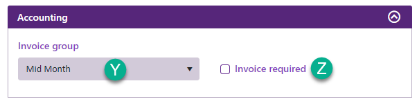 - Invoice group assigns the case to an invoice group. Invoice groups can be used as one of the criteria set in a session of the Invoice Generator to specify the invoices that it will create in one session.