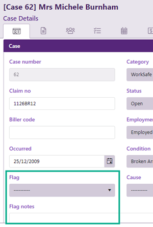 To flag a case select its Case Details tab and select a value from the Flag dropdown list.