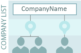 Thus, the list can contain multiple contacts who are all members of the same company. In the diagram below there are two contacts at the first location of CompanyName and one contact at its second location.
