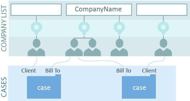 - All contacts that play any role in the system are members of the Company List and this includes case clients.