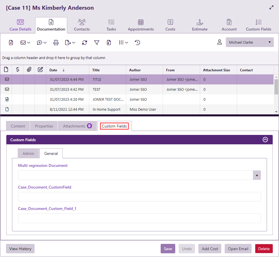 - a case at its Custom fields tab