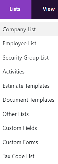 You access the Custom Fields List by selecting Lists > Custom Fields from the main menu. The list has some list tools to help you sort and filter the fields.