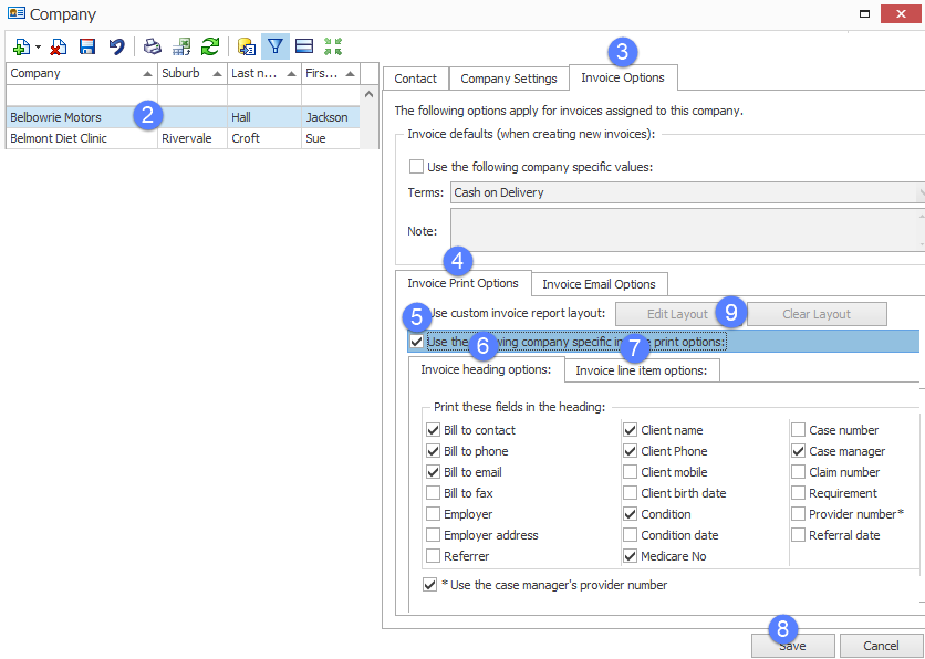 For detailed explanations of the heading and line options and where they will appear on the final invoice, see Heading and Line Item options.