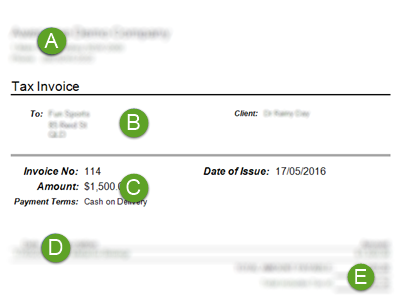 Here you specify how the invoice line items should be printed and the details that you want included. This appears at the bottom of the invoice (D in the diagram at the top of the page).