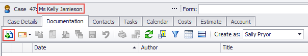It is 14/09/2016 and we are at the Documentation tab of Kelly Jamieson's case: