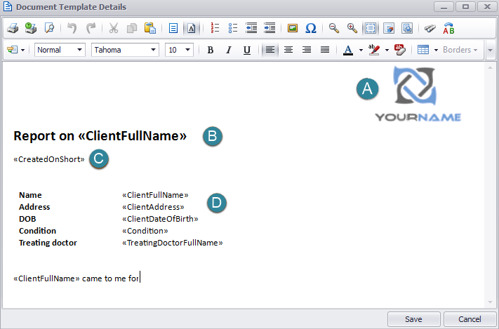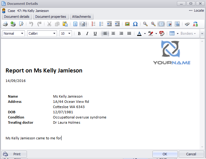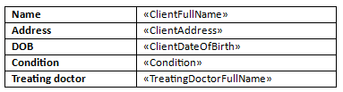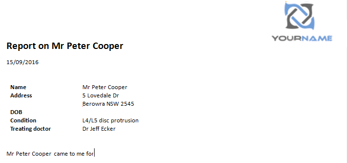 We want to automatically create client reports that start, as below, with our business logo, standard formatting, some simple text and the basic client details:
