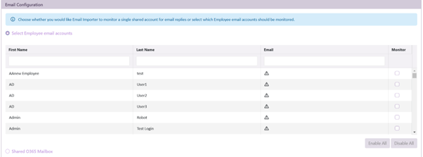 This setting allows you to choose if you would like to monitor a single shared account or select specific employee accounts.