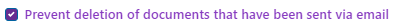 A system setting also allows you to specify whether you want to prevent deletion of emails that have been sent, see Document settings.