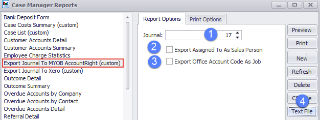 Select View > Reports from the main menu and click Export Journal To MYOB AccountRight.