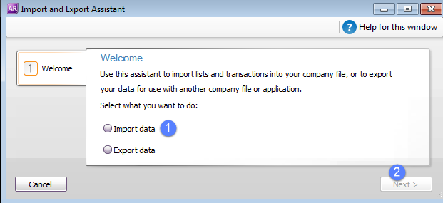 Select File > Import/Export Assistant from the main menu to start the import.