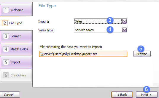 - Select Sales at the Import dropdown list.