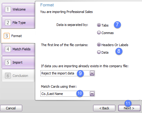 - The Format specifications are complete. Click Next.