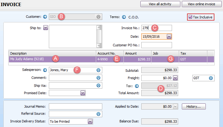 | E | The MYOB account number is derived from the invoice case category's shortcut: |