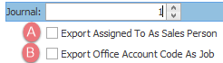 - Click this checkbox to set the office's bank account code to the MYOB invoice's job, see Export options below.
