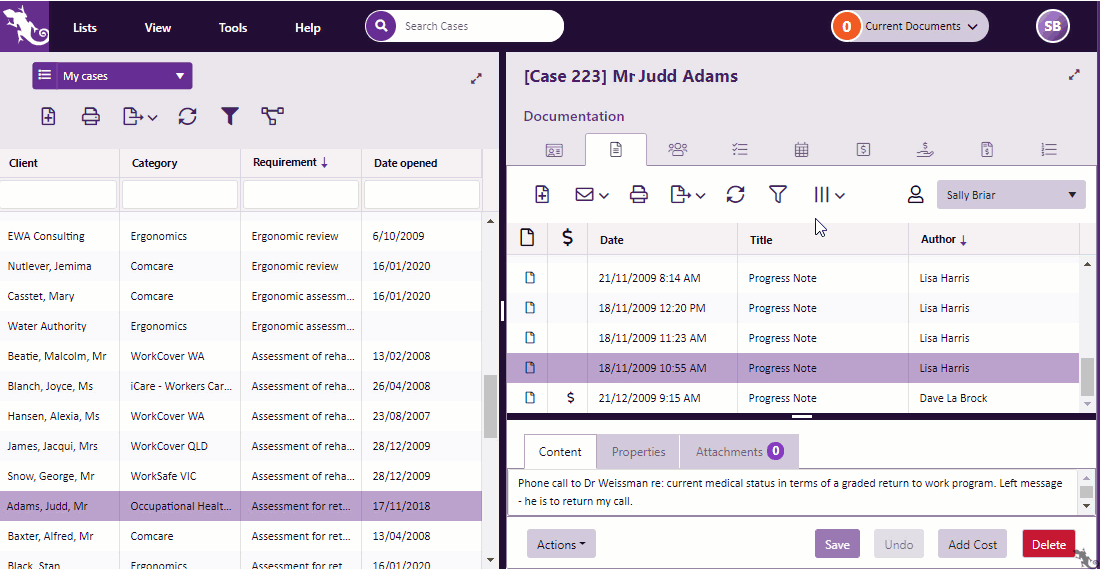 Grids (lists) feature throughout Case Manager. There are tools to manage the list itself as well as tools to manage items in the list.