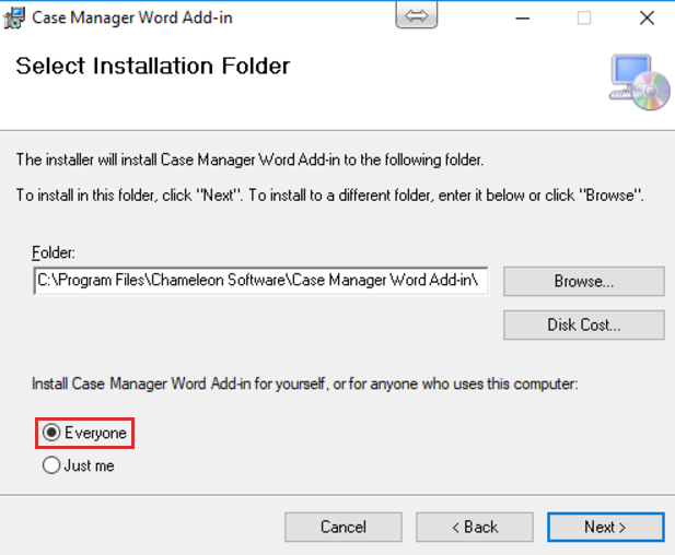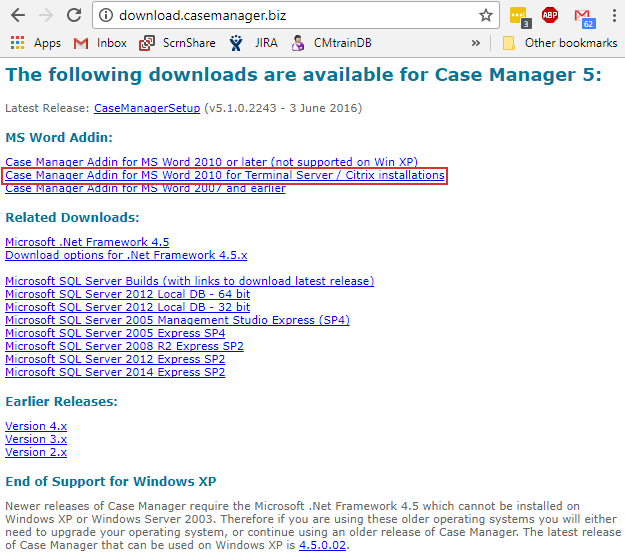 2. Click Case Manager Addin for MS Word 2010 for Terminal Server / Citrix installations