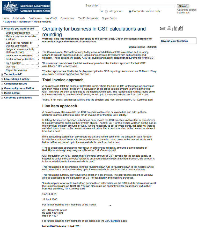 In some situations the two methods produce slightly different GST values because of the effects of cumulative rounding.
