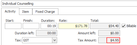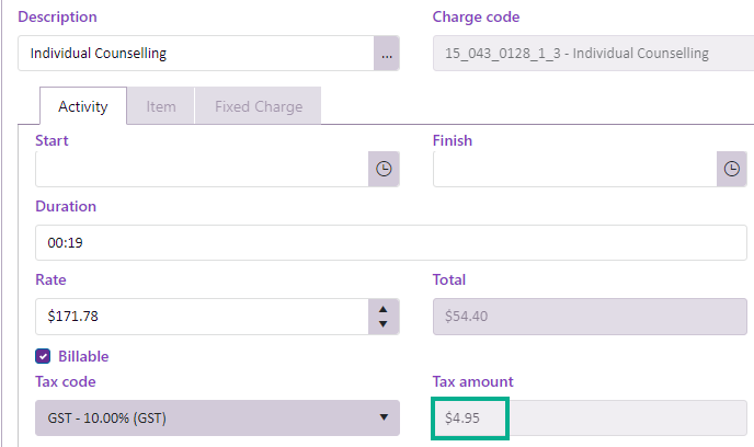 The tax for each invoice line item is added to calculate the total GST for the invoice and the tax is displayed for each cost item.