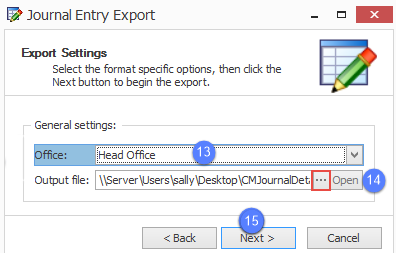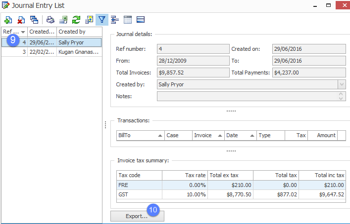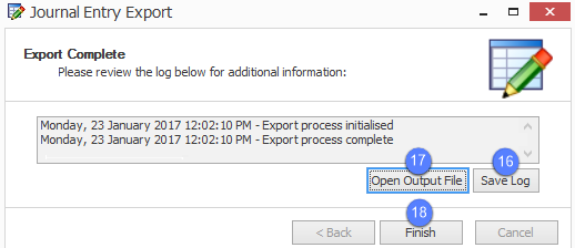 - Create an export file from the journal entry
