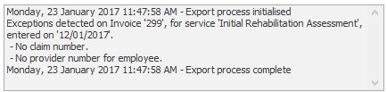 Note that when errors are displayed in the log the export file will still be created. However, this file will fail when it is imported into the ReturnToWorkSA system. If errors are reported in the log you need to rectify them and return to step 10 to create a new export file.