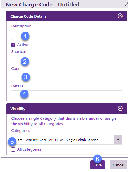 - Specify which categories the charge code is linked to.