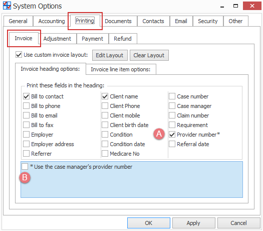 In Case Manager there are three provider numbers that you can add to your invoices: