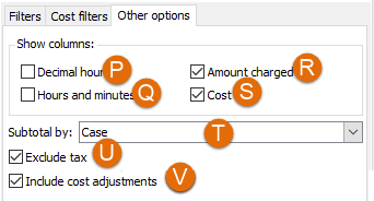 - Choose between costs for all cases, open cases or closed cases.