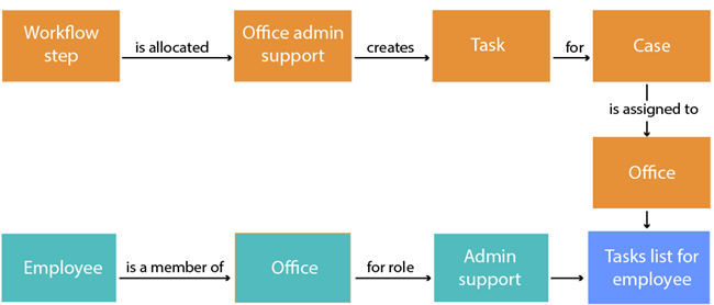 For example, if a task is allocated to the role Office Administration Support, the task will appear in the list of Tasks for every employee that has Admin support checked at the Employee List for the office that the case is associated with.