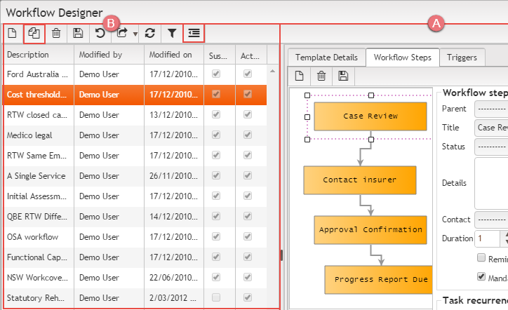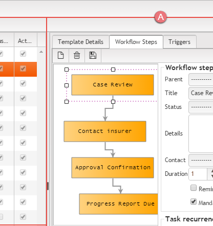 - The right hand panel displays the currently selected workflow template and contains the tools to edit it.
