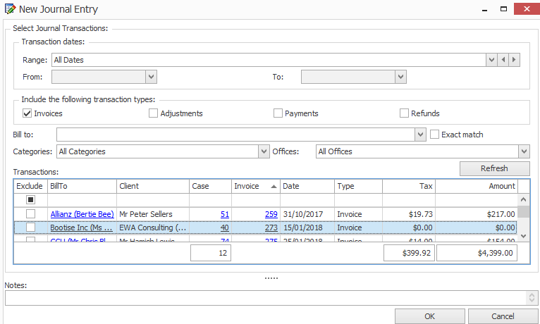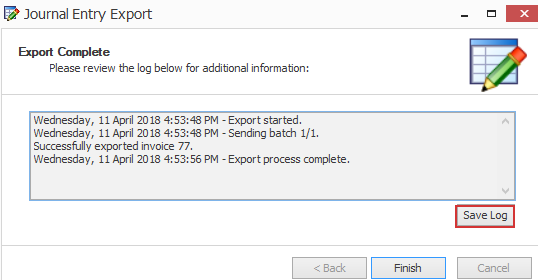 Note that if a journal entry contains some invoices that fail in the export it is possible to correct the invoice details and re-submit the journal. Case Manager will ignore the invoices it has already successfully exported and simply send the others.