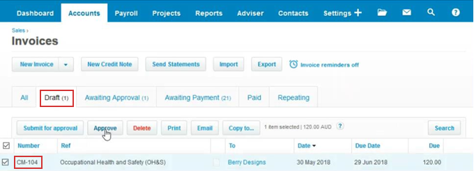 5. Approve the invoices in Xero